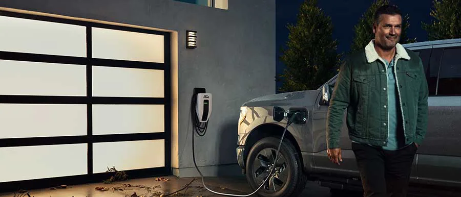 Your F-150 Lightning automatically begins powering your home when connected to the 80-amp Ford Charge Station Pro